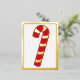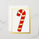 Red and gold foil striped candy cane. some parts of the postcard are printed with real foil and some are printed with standard ink (the red colour).