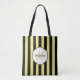 Say hello to summer with this tote bag in a trendy black and yellow-green vertical stripes pattern like that of a cucumber beetle. Personalize by adding your name and monogrammed initial. This is part of the Summer Bug Patterns Series designed by the Oh so Girly Boutique.