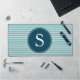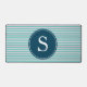 Customize the colour and monogram letter on this customizable deskmat. The design features stripes in pink and green with your initial in white over a navy blue background. Replace the monogram with your company logo. To see more cool desk mat designs for your home, office or small business visit www.zazzle.com/dotellabelle