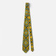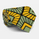 This tie has an art deco design of diamond shapes with diagonal lines and coloured diamonds in shades of green and yellow.
