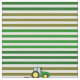 The stripes on this fabric are the beds of a farm field. There are green stripes for planted rows and brown stripes for unplanted rows. Green tractors are working the unplanted rows. A fun pattern for such things as quilts, curtains, face masks, and whimsical shirts and dresses. The furrows are unprinted and thus appear white. But you could change them to any colour you like by changing the background colour.