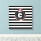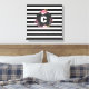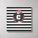 This 12" x 12" single panel premium wrapped canvas print has a black and white stripe pattern with a floral monogram in the centre. You can personalize this item by adding your name or initial using the template.