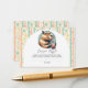 This pastel striped diaper raffle card features a funny capybara drinking bubble tea with colorful dotted stripes in cream, green, orange and yellow. The playful design makes it a fun personalized baby shower game card.