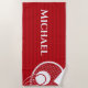 Striped Intense Red Tennis Racket & Ball Elegant Beach Towel
