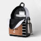 Stylish black and white striped backpack featuring a caramel front pocket with customisable name and initial. Perfect for school, travel, or daily use.