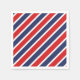 Party paper napkin is shown in the white cocktail size with a red, white and blue stripes print.