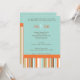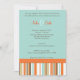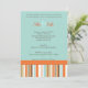 Striped orange and blue babyshower invitation. Design features modern stripes in striking oranges, blues, browns and white.