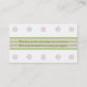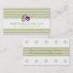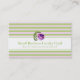 This standard business card front features pastel lilac and green stripes with a purple watercolor rose. It is designed as a small business loyalty punch card. The punch circles match the stripe colours on the back with a message of gratitude. Fill in the template fields with your information for the front and back, REMOVE any text or click customize to select a typeface style, size, and colour you prefer.