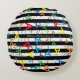 Black and white stripes pattern design with scattered colorful letters
