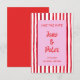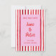 Playful, modern, and full of personality, this Save the Date card sets the tone for a celebration that doesn’t play by the rules. Hand-painted red stripes frame a soft pink center, creating a striking contrast that feels both romantic and fun, while brush-style lettering adds an effortless, artistic touch. It’s the perfect way to announce your date with confidence and color, letting guests know this is a wedding they won’t want to miss.