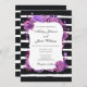 Striped wedding invitation modern. Purple flowers