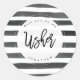 A black and white striped sticker with editable text and "usher" typography. Easy to change or delete the text fields available to suit your personal requirements. Please visit my shop to find matching items in this collection such as proposal cards, thank you etc.