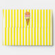 A fun yellow and white striped envelope for your ice cream party invites has an image of an ice cream cone on the back flap.