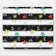 Black and white stripes pattern overlayed with Christmas symbols seamless pattern.