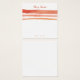 Une carte d'oreille et de collier simple et brillante présente des rayures de style peint à la main dans des tons chauds en terre cuite avec texte modifiable pour un nom de magasin et ligne de contact, donnant à bijoux faits main une présentation cohésive et professionnelle pour les vendeurs Etsy et les étalages du marché. Construites pour la polyvalence, les repères imprimés indiquent où placer les boucles d'oreilles ou les colliers de fil et les bracelets, ce qui aide à maintenir une disposition uniforme sur les listes et les foires artisanales. Les couleurs, les polices et les tailles peuvent être customisées en fonction du style de la marque. Ajoutez des poignées de médias sociaux ou un lien Web pour encourager les suiveurs et les ventes répétées tout en gardant la carte propre et moderne.