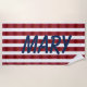 Series, of Abstract planks, stacked to form, wide stripes, in fading shades of, red, pink, blue, and black, against white, background-with your choice of Monogram, in Navy-blue.