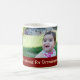 Merry Christmas Grandma custom photo mug in stylish red, yellow and green with festive stripes pattern with customizable text and photo, perfect as a holiday gift.