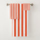 The towel set shows a vibrant orange and white stripes design. For styling ideas and customization enquiries please visit www.KBMD3signs.com
