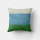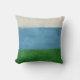 Contemporary abstract modern art throw pillow with blue, green and cream white stripes.