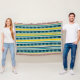 Blue, yellow and white triangles and stripes good mood interior throw blanket.