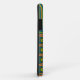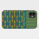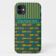 A chic Case-Mate Xtreme case to personalise for your iPhone 5/5s smartphone, with a jazzy tribal pattern in Orange-Red, Yellow-Green and Black on a Teal Background, teamed with a matching striped pattern. Part of the Posh & Painterly "Jungle Drums" collection.