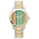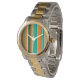 This watch has a Bauhaus design of stripes in shades of orange and teal.