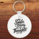This powerful typographic design features the uplifting and relatable quote: "My smile is strong even when my thoughts aren't." The black, stylized, brush-script lettering pops against a light grey background, making a bold statement. It's an image that captures the emotional resilience of masking inner turmoil with outward positivity. Perfect for use as a motivational poster, a phone wallpaper, or for sharing on social media.
