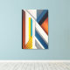 An explosion of colors and shapes in this vibrant geometric work. Diagonal and vertical lines in orange, blue, and yellow create movement and depth. Ideal for modern environments seeking visual energy and bold design. Perfect for highlighting neutral walls with contemporary sophistication.