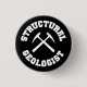 Structural Geologist - black button pin with white collegiate style lettering and crossed rock hammers.