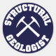 Structural Geologist - dark blue sticker with white collegiate style lettering and crossed rock hammers graphic.