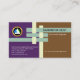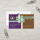 A simple creative design of interlocking I-Beam joints adorn the front of this card. The beams are demarcated by an underlying purple and brown backgrounds. In the latter colour, the top light blue I-Beam houses your prestigious name with your job title directly underneath. Near the card's floor is a slogan-tagline consideration. Eastwards in the purple background, there is a faux gold logo at the top with its contact details near the base of the card.