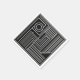 A refined geometric line‑art design featuring concentric circles and structured linear elements. The crisp white lines on deep black give any table setting a modern, elegant and distinctive look.