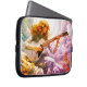 A decorative laptop bag with a somber picture of a young girl strumming her guitar, under a stormy sky.