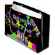 Large black glossy gift bag with an image on the front of red, orange, yellow, green and blue paint splatters, high-top sneakers in neon colours, cassette tapes, colourful sunglasses and the phrase “Stuck in the 80s” in neon letters. See matching medium gift bag. See the entire Tubular 80s Gift Bag collection in the PARTY FAVORS section.