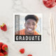 Modern graduation photo napkins with your custom photo, year, and the text "graduate" on a black background. You can change background colour, fonts and font colours, move and resize elements with the design tool.