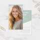 Sea green and white or custom colours graduation photo networking card with your name, year, school and photo. You can change background, fonts and font colours, move and resize elements with the design tool.