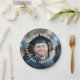 Modern graduation photo paper plate with custom name, school and year in a white college jersey sports font as an overlay over your photo. You can change font and font colors, move and resize elements with the design tool.
