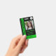 Please note that the background colour, fonts, and sizes of text can be changed. You can upload a QR code, or a bar code, or add any other info on the backside.