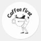 High-quality [STYLE] sticker featuring the quote “[Coffee first]”. Perfect for decorating laptops, notebooks, phones, water bottles, and more. Designed with a clean and modern aesthetic, this sticker makes a great gift for friends, students, and anyone who loves unique and relatable designs.