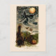 A dark sky filled with stars and a big, harvest moon is studying an interesting star formation of a witch on a broom. It’s a perfect Halloween night. The text is original to the print and reads, “Study the Stars on Hallowe’en Night.” This postcard would make a great Halloween party invitation.