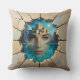 Experience a bygone civilization with this throw pillow, which features a broken shard of pottery from ancient times, showing the ruins of the mythical lost city of Atlantis, emerging from the head of a young blue-eyed woman and the watery depths to which it had been consigned for untold millennia. Reverse shows identical design.