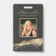 Elevate your salon's professionalism with this Stunning Black And Gold Glitter Salon ID Badge. Designed with a luxurious black background and adorned with sparkling gold glitter accents, this ID badge offers both style and functionality. The elegant script typography complements the overall design, making it perfect for upscale salons and beauty professionals. Personalize it with your name, photo, and salon details to create a cohesive and polished look for your team. Ideal for hairstylists, makeup artists, and beauty experts who want to make a lasting impression on clients.