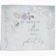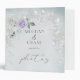 Keep your wedding photos in this beautifully designed fantasy rose binder featuring ice blue, pastel lilac and white roses along with silvery iridescent leaves and iridescent greenery in a wedding arch. 'Happily Ever After' written in modern calligraphy on the binding, on the front the bride and groom's names and wedding date in modern contemporary style text and the word photos in script calligraphy. This is part of a wedding stationery collection with matching wedding accessories. Design created for the BarefootBride™ © by WhimsicalArtwork™