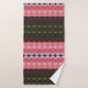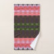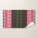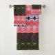 Home bath decor, a stunning patterned towel set in coral, plum, and dark greens.