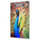 Our photograph of a brightly coloured peacock in full colour looks amazing on canvas, poster prints, or even greeting cards.