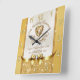 Gold Heart Shaped Diamond design embellishes this Stunning, Personalised Golden Anniversary Clock. Type in Couple's Name or Mum and Dad. You can TRANSFER this beautiful 50th Anniversary Clock to THOUSANDS of other personalised 50th wedding anniversary gifts and party supplies. CALL Designer Linda: 239-949-9090 EST 10am to 7pm for Design, COLOR, YEAR, Occasion and Product CHANGES.