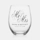 Stunning personalized Mr and Mrs wedding Stemless Wine Glass