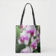 Stunning group photo of pink and white orchids on an all over printed tote bag