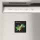 Stunning watercolor-themed digital art design of two plumeria flowers on a refrigerator magnet. The background is a solid black, and the flowers have shades of blue and yellow. The stylish yellow text says, "Aloha oukou" - a traditional Hawaiian greeting which means "Aloha to all of you." You can easily customize and change the wording if you wish. This eye-catching design on a square magnet is sure to attract some attention.