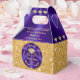 Stunning Purple and Gold Favour Boxes Personalized for Her Birthday or ANY Occasion or ANY Age. You can TRANSFER to THOUSANDS of other Birthday Party Supplies, Decorations, Gifts and more. CLICK "Personalize" Button and Type in YOUR TEXT or DELETE Any Text or Design Layers. These party favour boxes with handle or choose a different style but you will need to make CHANGES because this design will not fit on other style boxes.